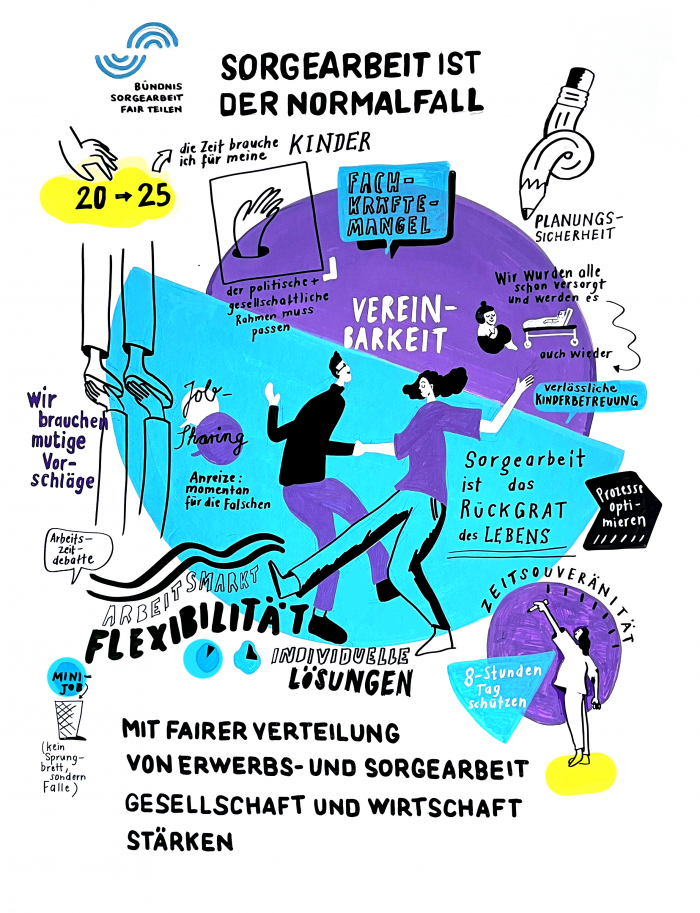 Mehr InformationenAm 17. September 2025 fand in Berlin das Dialogforum des Bündnisses Sorgearbeit fair teilen unter dem Motto „Sorgearbeit ist der Normalfall: Zeit für Erwerbs- und Sorgearbeit“ statt, moderiert von Katharina Linnepe. Vertreter*innen aus Wirtschaft, Wissenschaft, Zivilgesellschaft und Politik diskutierten gemeinsam über Wege zu einer gerechteren Verteilung von Sorge- und Erwerbsarbeit.