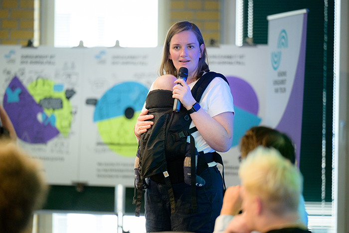 Einblicke in persönliche Lebensrealitäten lieferten u.a. Doreen Borchert (Alleinerziehende und Mitglied beim Verband alleinerziehender Mütter und Väter – Landesverband Bayern), Martin Habedank (Vater und Führungskraft in Teilzeit) und Anabell Motschiedler (erwerbstätige Mutter in Elternzeit). Ihre Erfahrungen verdeutlichten, wie entscheidend flexible Arbeitszeitmodelle, eine verlässliche Kinderbetreuung und ein gesellschaftlicher Mentalitätswandel für die gerechte Aufteilung von Erwerbs- und Sorgearbeit sind: